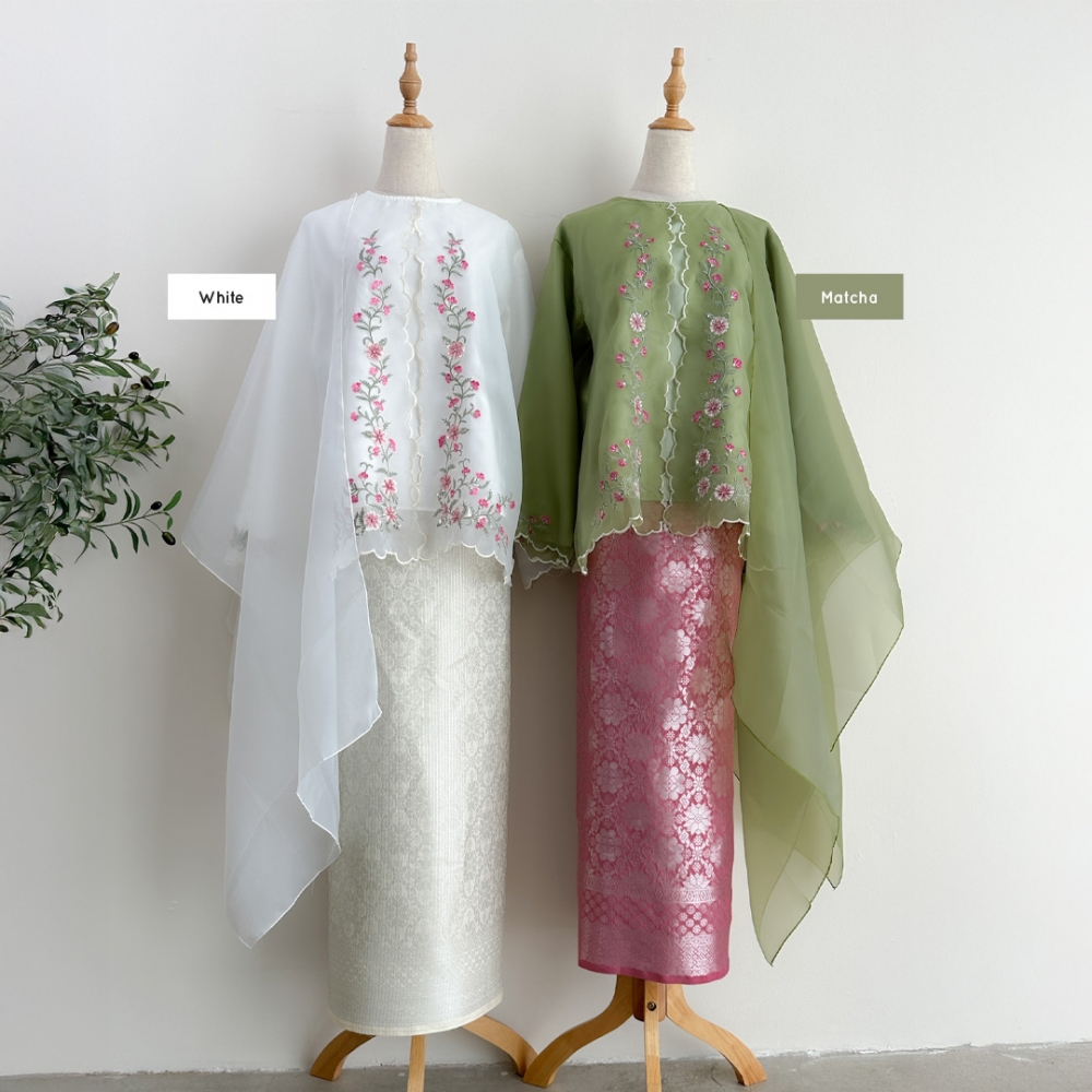 Material : Organza Top with lining inside & Self Tie Songket Pario (FREE ORGANZA SHAWL)